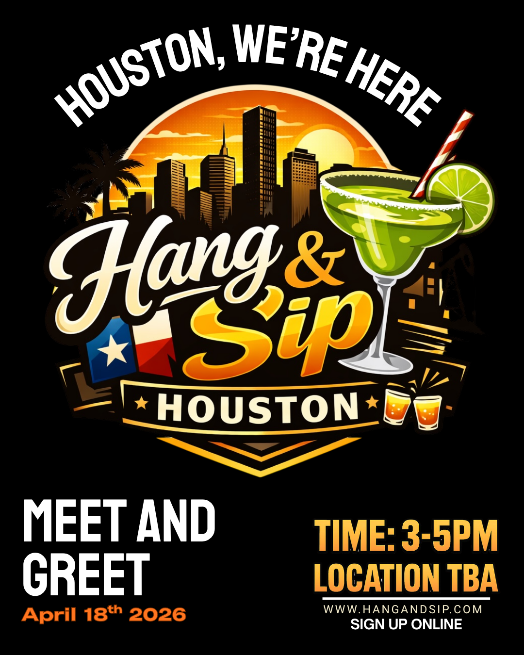 Houston, we have arrived and we want to meet YOU! Join us for an unforgettable meet & greet experience — come hang, sip, and connect with us. We can't wait to see you there! 🎉